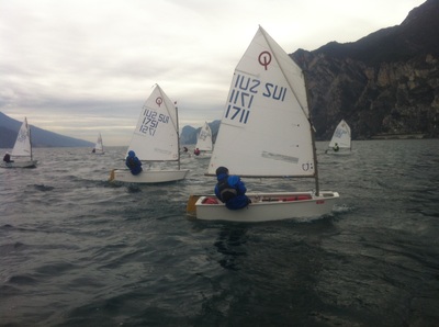 We returned to Riva del Garda the first week of October. No regatta this time, just training. We were twelve kids from the Lake of Zürich region and from the Lake of Constance region. We were coached by my club coach Marco and Beni who mostly sails and trains Lasers (but he did a great job anyway). It was a week of comparatively light winds. We only had more than 25 knots a single time, on Monday. Wednesday was OK, too, with between 10 and 15 knots.