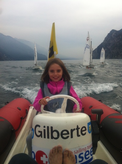 It was great to sail on Lake Garda anyway. It really feels pretty “homy” now. My brother Niklas was part of the team, my sister spent a lot of time on the coach rib (and enjoyed it a lot, see photo below) and my parents enjoyed kids-free time. My father made us run up Monte Brione, claiming that it’s just a short run but it was long, steep and high (see photo). I believe he was the most hated man in Riva that morning ;-).