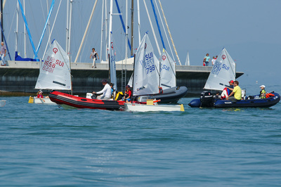 We were supposed to have the International Swiss Championships in Arbon, Lake Constance, last Thu.-Sun. Due to the lack of wind we managed to sail two races in four days only. The two races we had were wind lotteries, especially the second one where a quarter of the fleet got a black flag and another quarter did not finish in time.