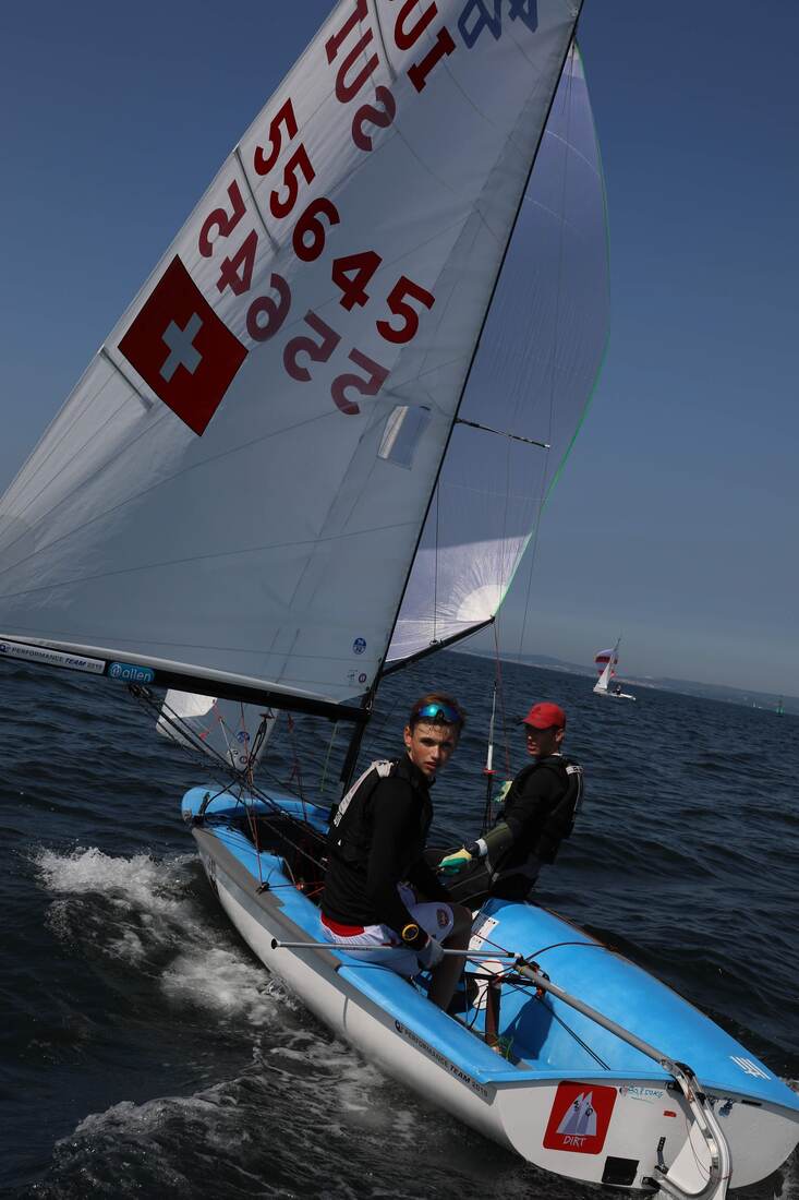Niklas und ich sind jetzt von der EM zurück. Dort ist es bei uns so mässig gelaufen. An drei Regattatagen hatte ich Fieber und war eigentlich die ganze Zeit erkältet. Ideal war das nicht, vor allem weil wir immer mindestens sechs Stunden auf dem Wasser waren.