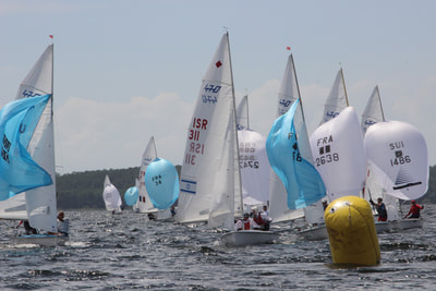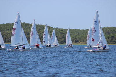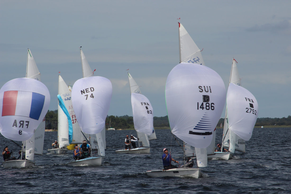 Ich bin in den Ferien mit meinem Vater beim 470er Master’s Cup auf dem Lac d’Hourtin gewesen, das liegt in der Nähe von Bordeaux. Der See liegt direkt am Meer und ist nur durch eine Düne von ihm getrennt. Der Master’s Cup ist die Senioren-Weltmeisterschaft. Es gibt vier Altersgruppen Apprenticeship Masters (Gesamtalter 60-70 Jahre), Masters (71-100 Jahre), Grandmasters (100-120 Jahre) und Grandgrandmasters (>120 Jahre). Wir waren bei der jüngsten Gruppe und sind gemeinsam mit den zweitjüngsten gestartet. Ich war der jüngste Teilnehmer und der allerallerjüngste Steuermann.