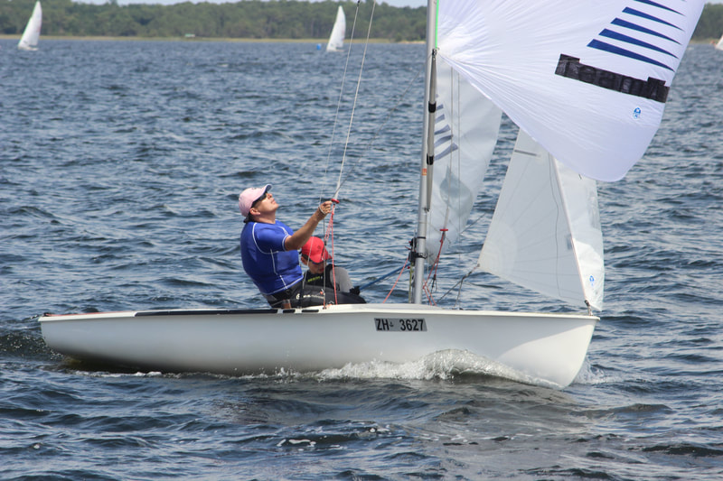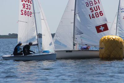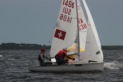 Der erste Tag lief schlecht, ein vierter und ein siebter weil mein Vater die Fock nicht schnell genug rüber bekommen hat, wir gekentert sind und unser Mast fest im Schlamm steckte. Wir sind aber anfangs auch sonst nicht so gut mit den Verhältnissen zurecht gekommen, es war recht löchrig und drehig an allen Tagen.