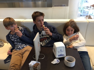 I am looking back on an intensive week of training with the world’s best coaches on Lake Garda during my fall school holidays. We had fantastic wind and spend a lot of time on the water. We also had quite a lot of physical exercises and I was really tired afterwards. I also spend the second week of my holidays on Lake Garda, this time with my family, and I spend a lot of time sleeping… We did, however, also do some hiking and my dad and I ran up Santa Barbara one morning. My little sister and I also did some climbing on the rocks of Monte Baldo. I need to admit that my much younger sister is much better at climbing than I am. She’s definitely less fearful when it comes to altitude.