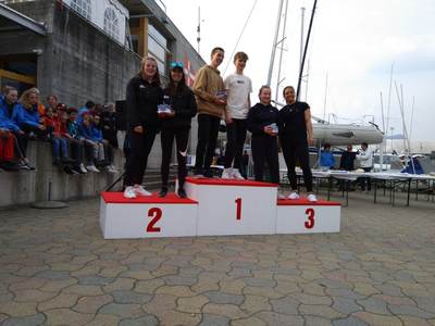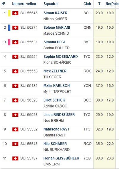 Die Saison hat ja nicht so toll begonnen weil ich mir den Arm gebrochen hatte und Niklas von der Schule nicht so viel frei bekommen hat wie wir wollten. Aber in Lugano waren wir voll dabei. Am ersten Tag hatten wir einen 11. und einen 7., das war schon mal nicht so schlecht weil ja wirklich alle Schweizer Topteams am Start waren. Am Sonntag waren wir dann 2. und hatten zuletzt noch einen Laufsieg und damit den Gesamtsieg ersegelt. Auf dem letzten Raumwind konnten wir sogar noch ein kleines Schwätzchen mit Stephan Zurfluh halten der auch aus Stäfa ist und so ein bisschen unser Vorbild. Ich war gleichzeitig auch jüngster Teilnehmer. Recht cool war noch, dass Simona und Sarina punktgleich Dritte geworden sind. Die sind auch mit uns im Regionalkader und wir kennen sie schon ewigs.