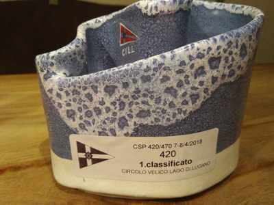 Letztes Jahr war ich in Lugano bei den Optis noch Vierter und habe so eine komische Salatschüssel gewonnen. Dieses Jahr gab es für den Sieg auch etwas aus Ton. Ich weiss nur nicht was es ist. Aber egal, Hauptsache da steht «1. classificato» drauf.