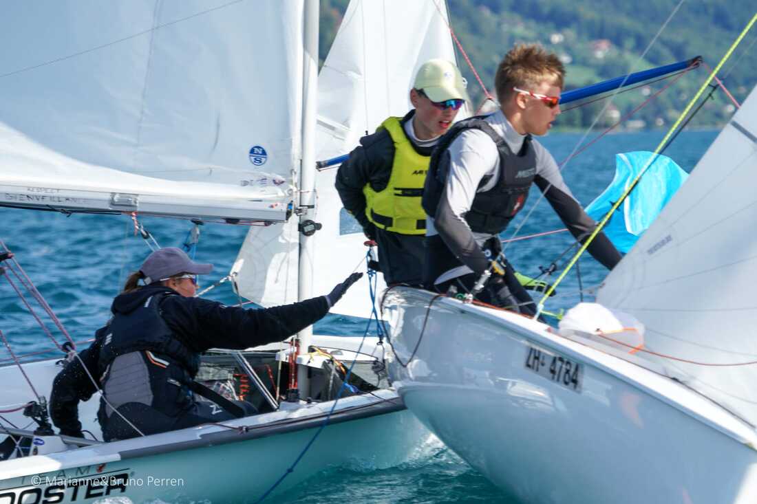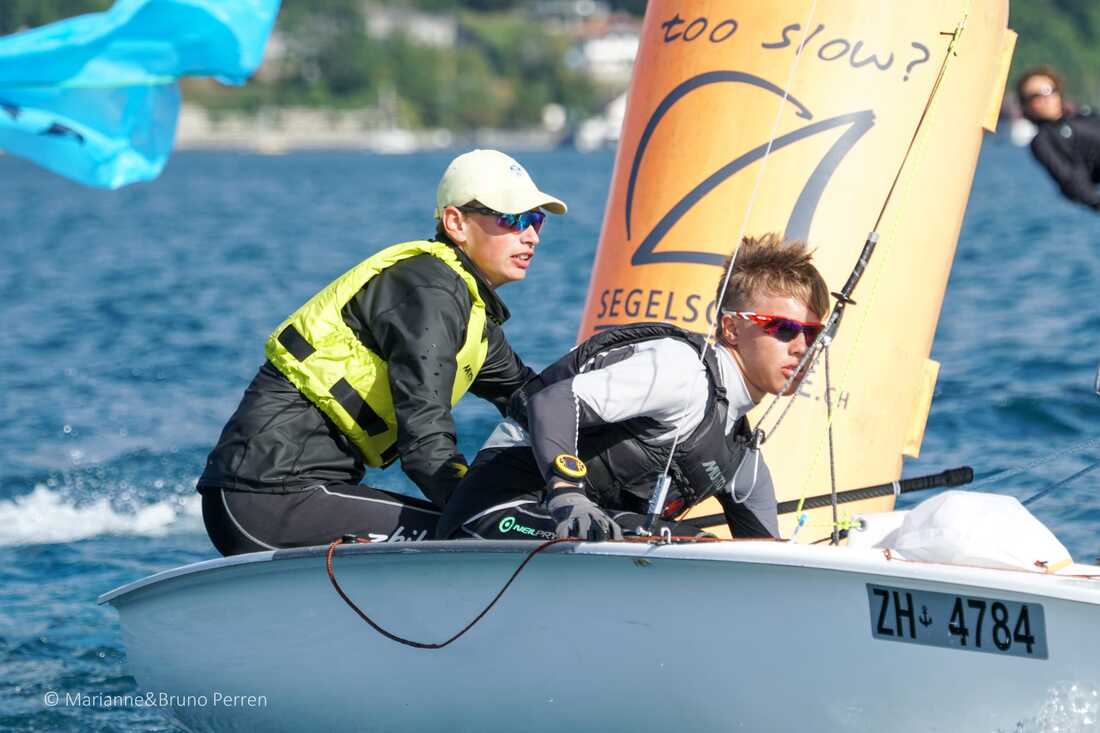 Wind bei einer Schweizer 420er Meisterschaft hatten wir schon lange nicht mehr. Das war dieses Jahr in Oberhofen anders, wir haben sogar die Maximalzahl von zwölf Läufen geschafft. Zwar war es drehig und löchrig und bei den letzten beiden Läufen am Sonntag auch wirklich sehr wenig. Aber im Durchschnitt hatten wir sicher etwa acht Knoten und in einigen Läufen konnten manche Teams auch die Qualität ihrer Schwertlippen überprüfen.