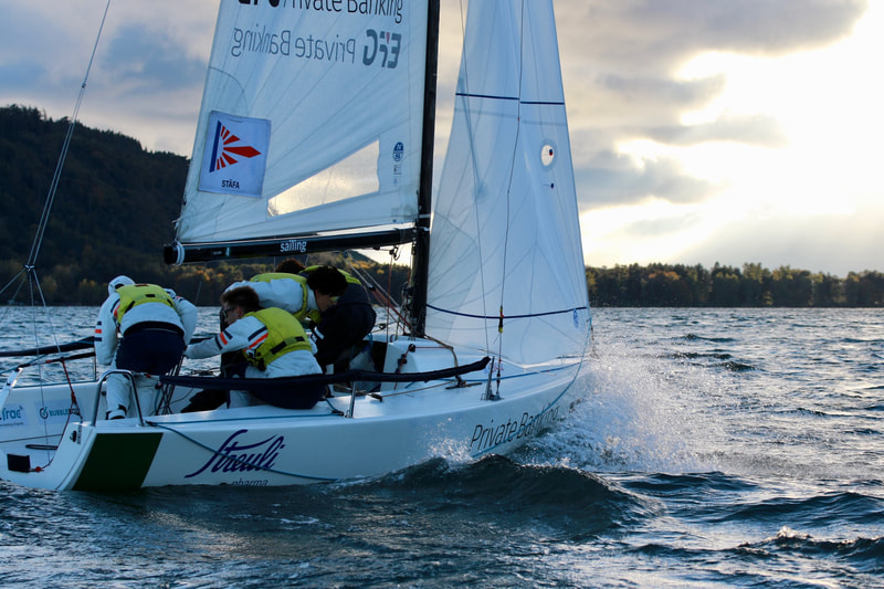 We proceeded to Kreuzlingen, known for its unpredictable conditions with winds ranging from near calm to 25 knots and erratic wind shifts. We could read those shifts well, resulting in a very strong third-place finish.